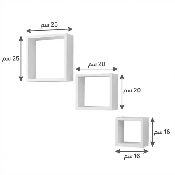 White Decorative Square Wall Shelves Set – 3 Pieces in Different Sizes (Large, Medium, Small)