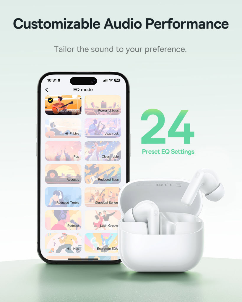 Immerse yourself in powerful, customizable sound with the Baseus Bass BP1 NC In-Ear TWS Earbuds. Featuring 12mm dynamic drivers and 24 EQ presets, they deliver rich bass and precise audio tailored to your music style. Hybrid-ANC technology with -43 dB effectively blocks external noise, creating a quiet, focused listening environment for travel, work, or workouts.
