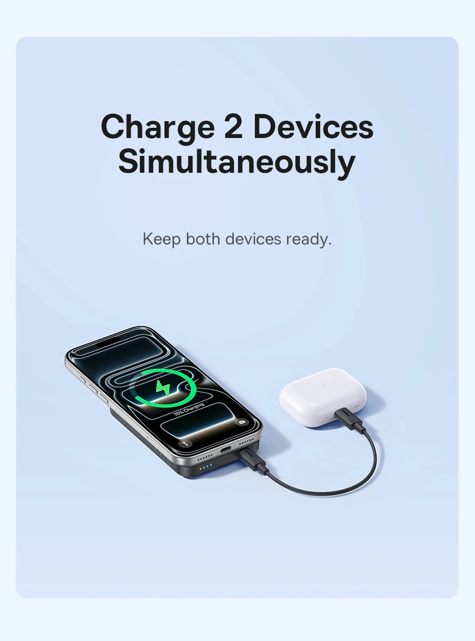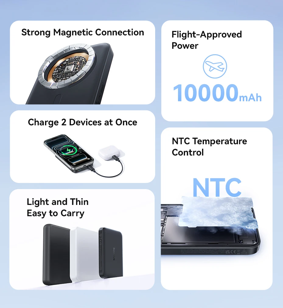 CompareThe Baseus EnerFill FM11 Magnetic Power Bank offers 10000mAh high-capacity charging with 30W PD wired and 15W wireless fast charging. Its magnetic design ensures a secure attachment to compatible devices for convenient on-the-go power. Compact and portable, it keeps smartphones, tablets, and other gadgets powered anytime, anywhere.