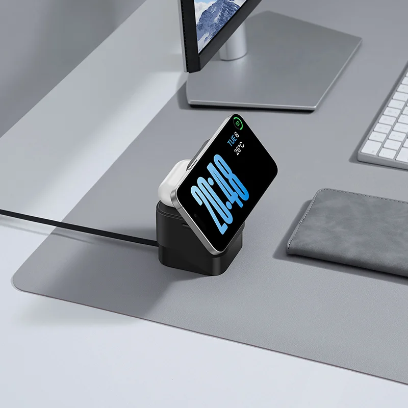 CompareCharge all your devices effortlessly with the Baseus 25W MagPro 3-in-1 Magnetic Wireless Charging Station, featuring strong magnetic alignment for secure, efficient charging. Its compact and portable design, adjustable viewing angle, and retractable USB-C input cable make it perfect for home, office, or travel. With stable, safe charging for smartphones, earbuds, and other Qi-compatible devices, this station combines convenience, speed, and reliability in one sleek hub.