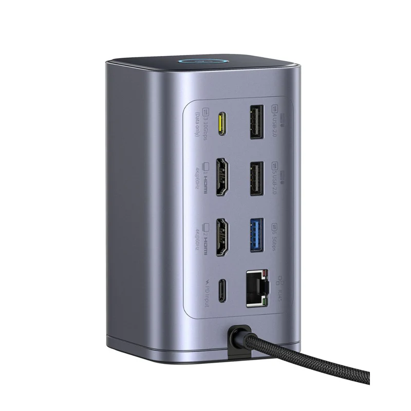 The Baseus Nomos NU1 Air 12-in-1 Docking Station transforms your workspace with ultimate convenience. It supports dual 4K displays, high-speed 10Gbps data transfers, and 100W PD charging for laptops. Equipped with multiple USB ports and Gigabit Ethernet, it streamlines connectivity for productivity and efficiency.