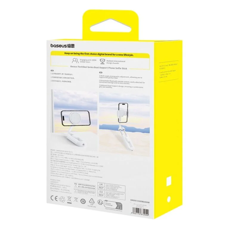 The Baseus TechShot Series Dual-Support Phone Selfie Stick offers stable and flexible shooting for photos and videos. Designed with dual support for better balance, it ensures steady captures every time. Its lightweight and portable design in Moon White makes it perfect for travel, vlogging, and daily use.