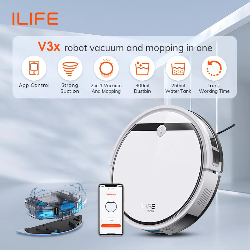 Keep your floors spotless with the ILIFE V3x Robotic Vacuum Cleaner, designed for both dry and wet cleaning. Its gyroscope navigation ensures precise movement, while compatibility with Alexa, Google Home, and the ILIFEHOME app makes control effortless. Quiet, efficient, and easy to maintain, the V3x delivers smart cleaning for any home environment.