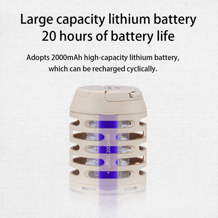 The Naturehike Outdoor Mosquito Killer Lamp in Khaki combines powerful lighting with effective insect control for a comfortable outdoor experience. Using UV light and an electric grid, it eliminates mosquitoes while offering multiple lighting modes for camping and travel. With a 2000mAh rechargeable battery, IP44 protection, and up to 20 hours of runtime, it ensures reliable performance in any outdoor setting.