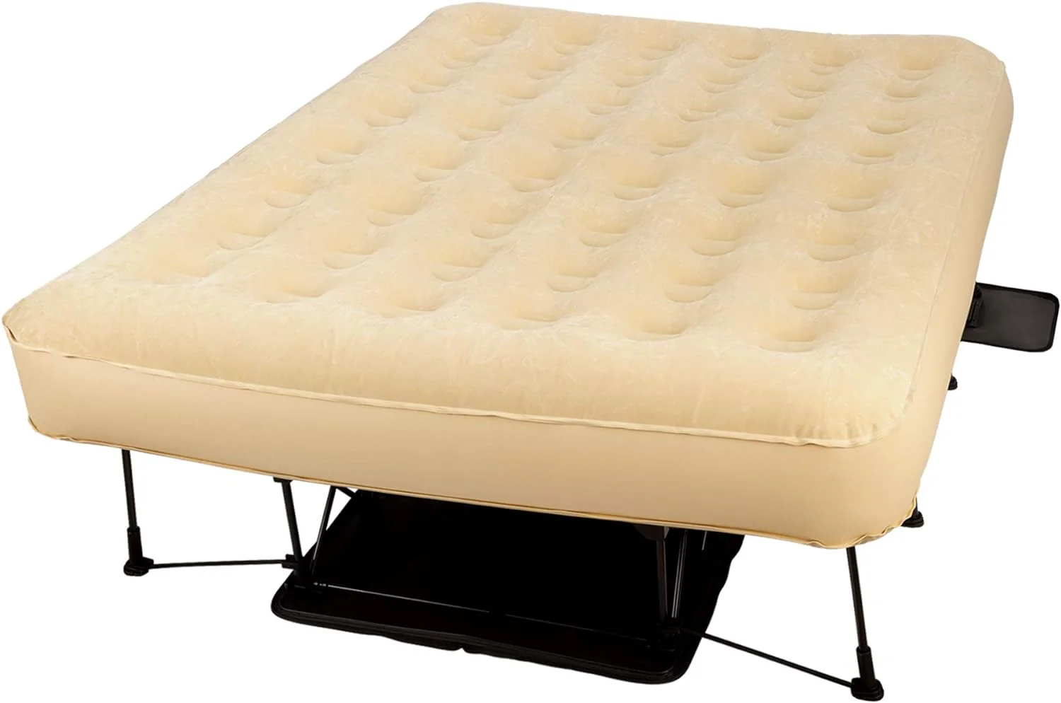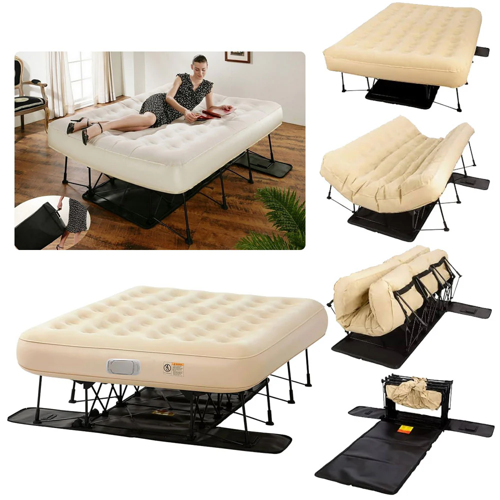 Comfortable self-inflating mattress with a foldable metal frame — perfect for guests, camping, or compact spaces.