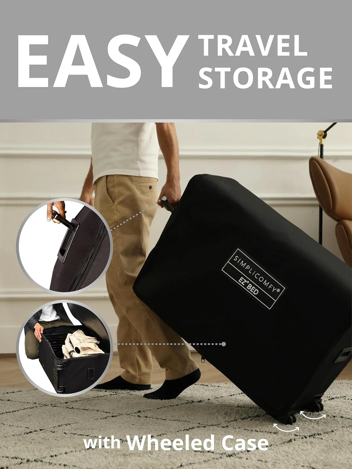 تأتي مع إطار معدني قابل للطي، ما يجعلها مثالية للاستخدام داخل المنزل أو أثناء الرحلات والتخييم.