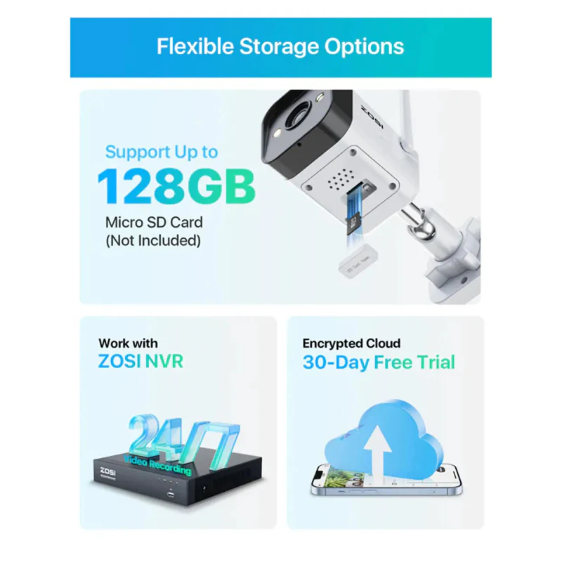 - Local Storage Support: Supports memory cards up to 128GB for secure recording